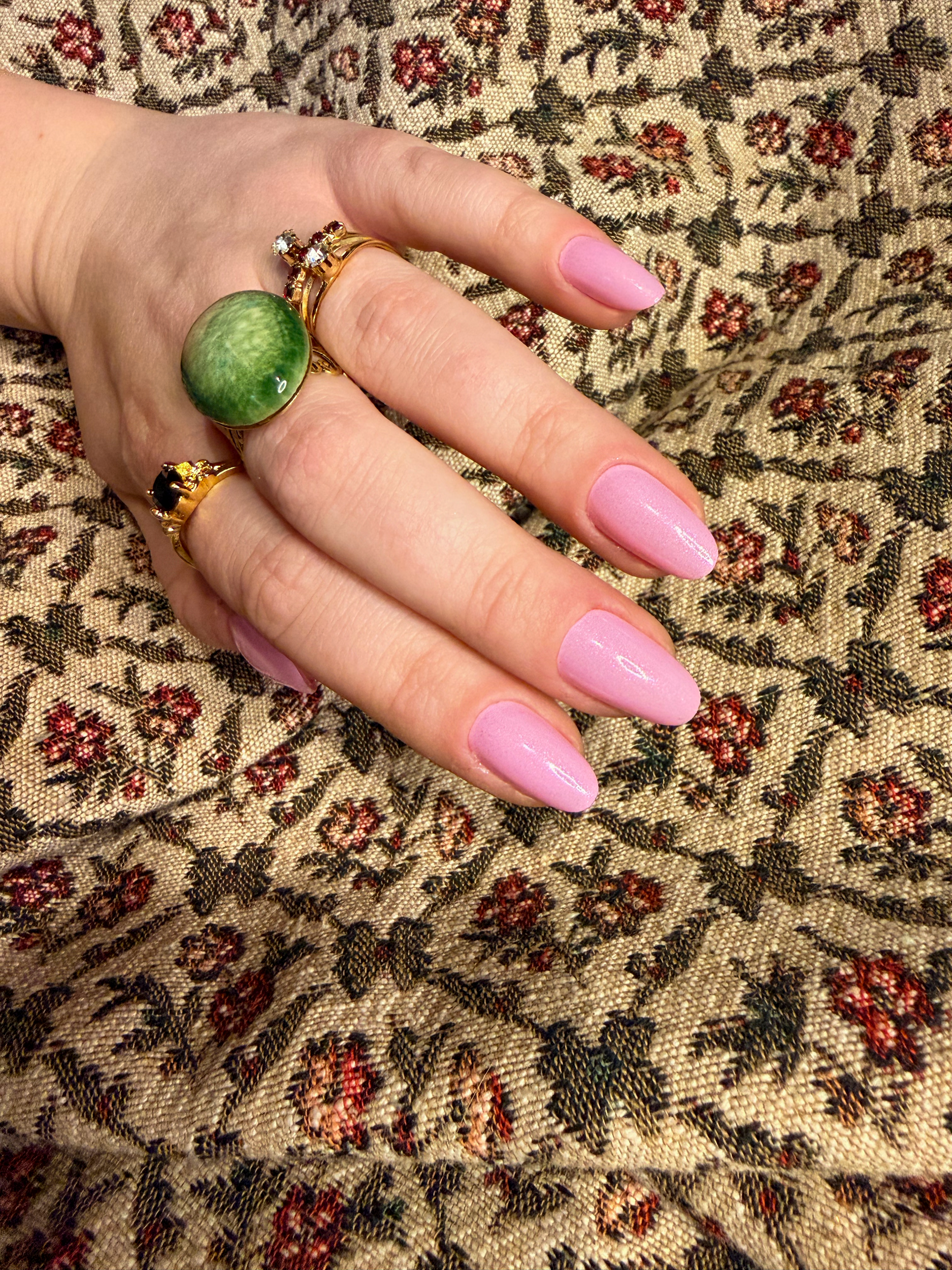 Petal afterglow is a baby pink polish kissed with a light pink-to-orange shimmer that glows softly across the surface. The base is delicate and airy, while the shimmer shifts like warm light at golden hour. It’s subtle, but unmistakable there when it catches sun. Sweet at first glance, but with a warmth that lingers just beneath, this shade is anything but forgettable.